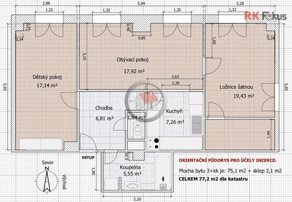 Vytápění je řešeno ústředním dálkovým topením a k bytu náleží také sklep o velikosti 2 m², ideální pro uložení sezónních věcí.