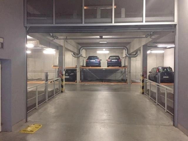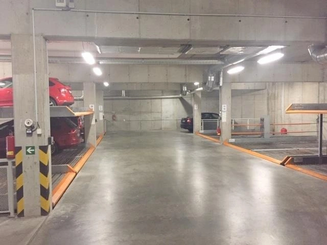 Vjezd do garáže je z krytého průjezdu z ulice, který je ovládaný přenosným čipem.