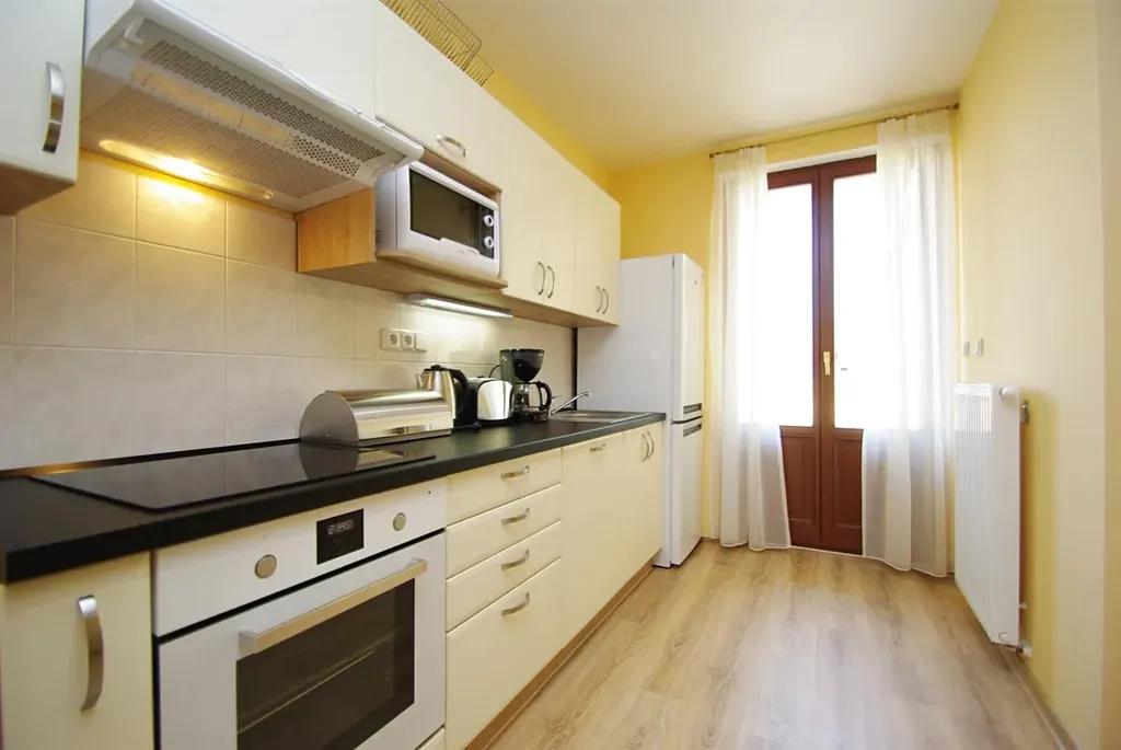 Poplatky: fixní ve výši 3.400,/měsíčně (wifi, úklid domu, výtah, osvětlení, odpady, pojištění)  + zúčtovatelné zálohy na spotřebu energií ve výši 2.000, / měsíčně/ osobu. Vratná kauce 1 nájem.