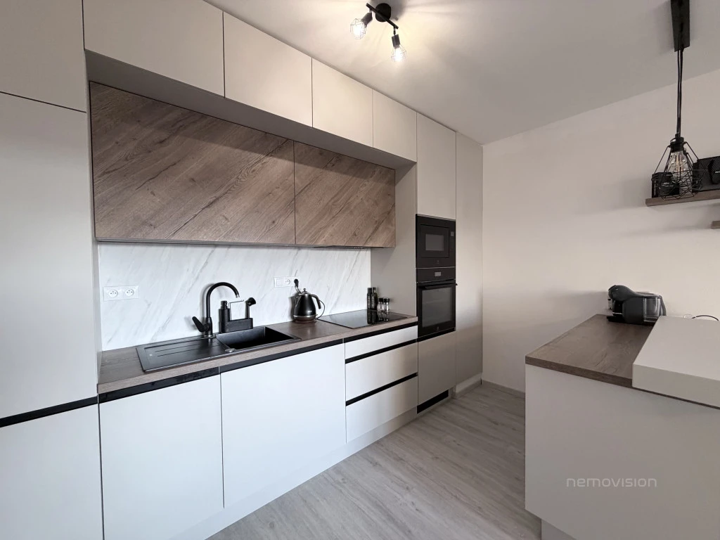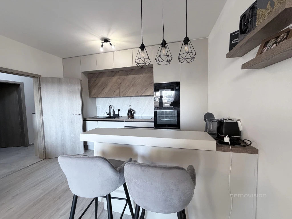 Byt je prakticky řešený, světlý a vybavený nábytkem na míru, který nabízí dostatek úložných prostor. Velkou předností je prostorná terasa, ideální pro relaxaci, posezení s přáteli nebo letní grilování.
