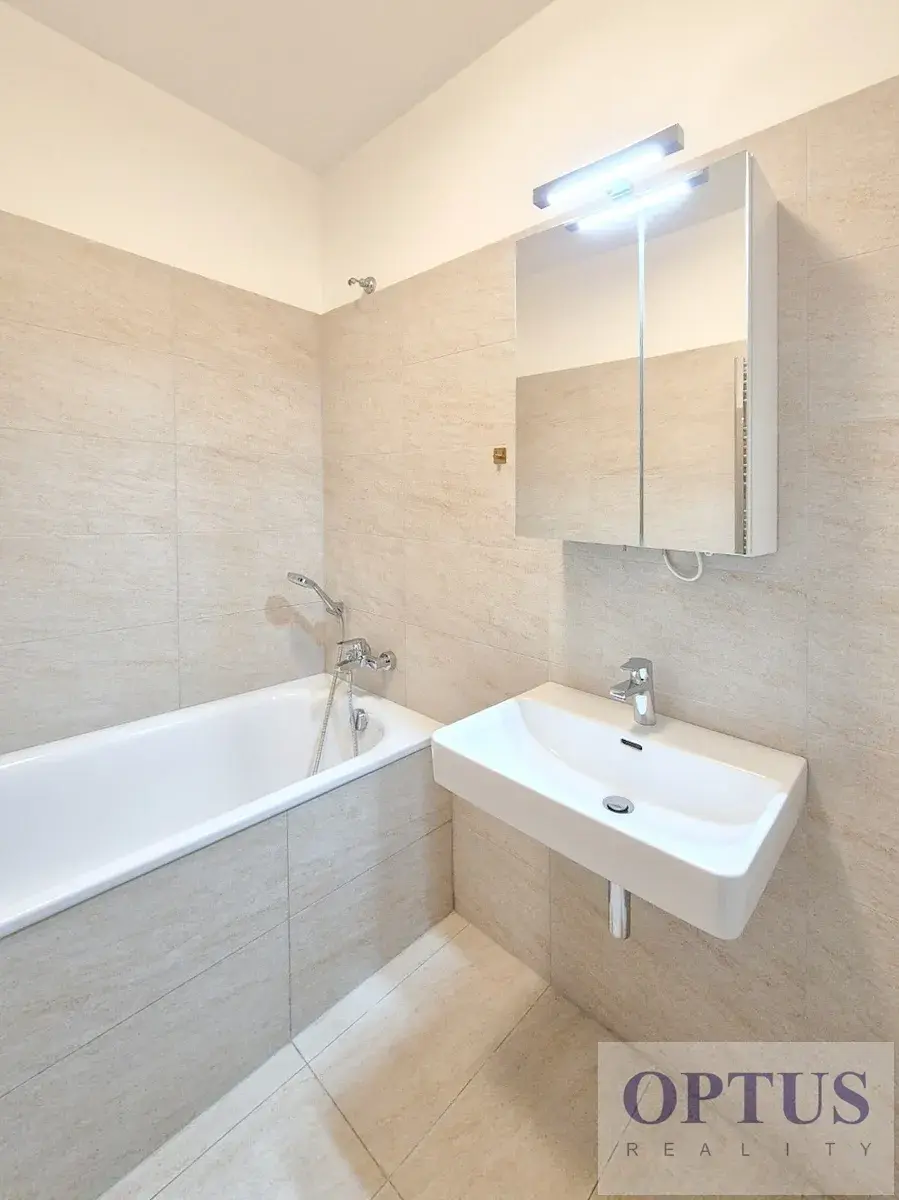 Nový luxusní nezařízený byt 2 + kuchyňský kout (57,4 m2) + lodžie 7,3 m2, situovaný ve 2. nadzemním podlaží právě dokončeného rezidenčního domu Port Karolina (2020) s výtahem. Byt tvoří předsíň, obývací pokoj s plně vybaveným kuchyňským koutem o velikosti 27 m2 se vstupem na lodžii s výhledem na Vltavu, ložnice 15,5 m2, koupelna s vanou, samostatné WC a komora.