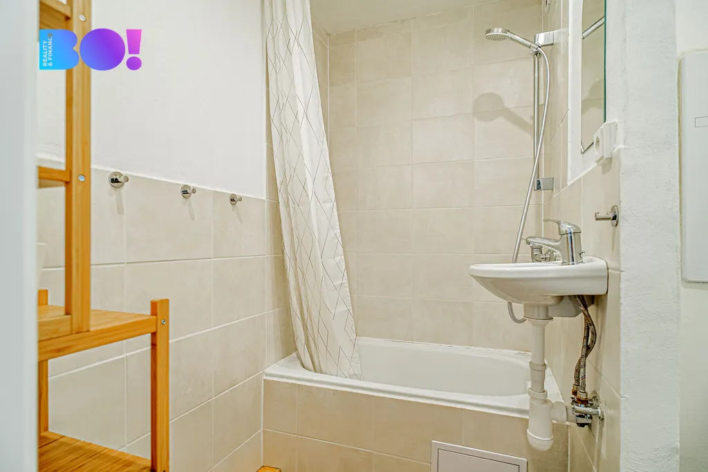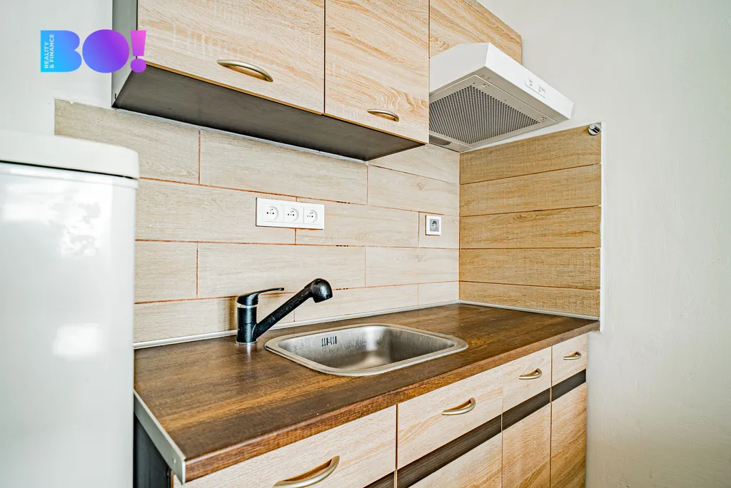 Kuchyňská linka, vyzděná koupelna i podlahy jsou ve velmi dobrém stavu.