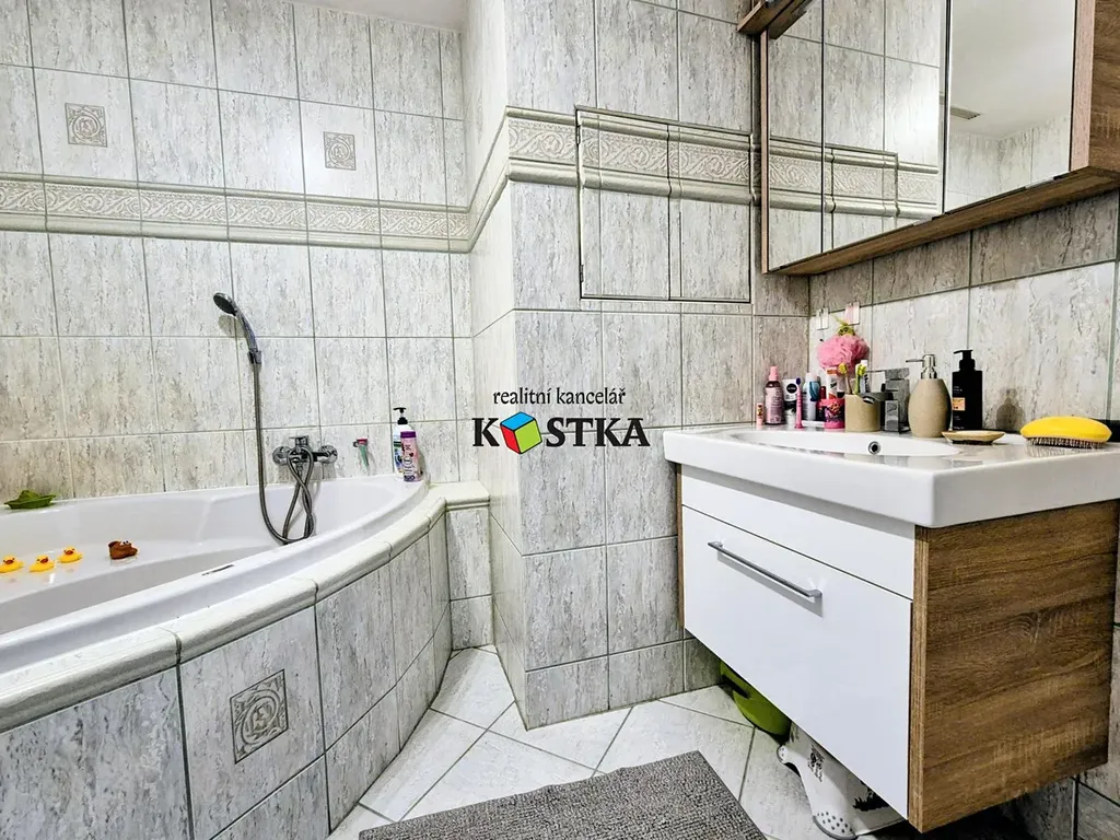 V kuchyni najdete zánovní kuchyňskou linku osazenou plynovou varnou deskou (protože všichni profíci vaří na plynu), digestoří, vestavěnou elektrickou a mikrovlnnou troubou a myčkou nádobí. Koupelna pro vás bude velkým překvapením, protože ta původní byla kompletně přestavěna a nově je daleko prostornější s rohovou vanou, umyvadlem a místem pro pračku a sušičku prádla. Toaleta byla přesunuta na výhodnější místo v bytě.