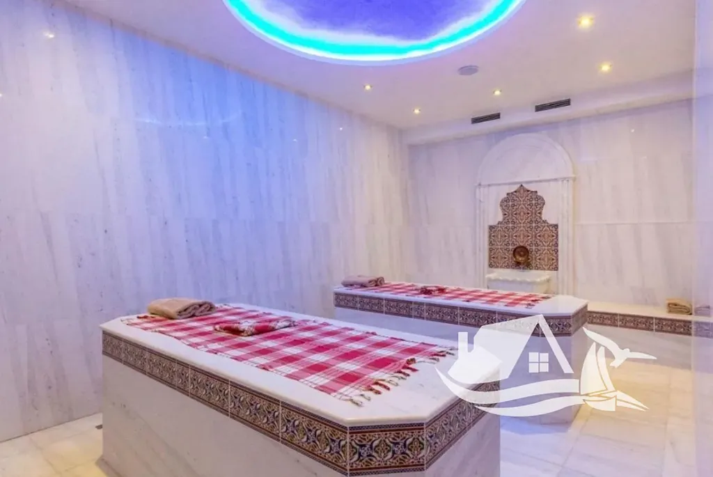 Třípokojový apartmán se nachází v 6. patře rezidenční budovy s výtahem a nabízí celkovou plochu 158,34 m². Interiér je promyšlený do posledního detailu a doplněný o mimořádně prostorné venkovní plochy.