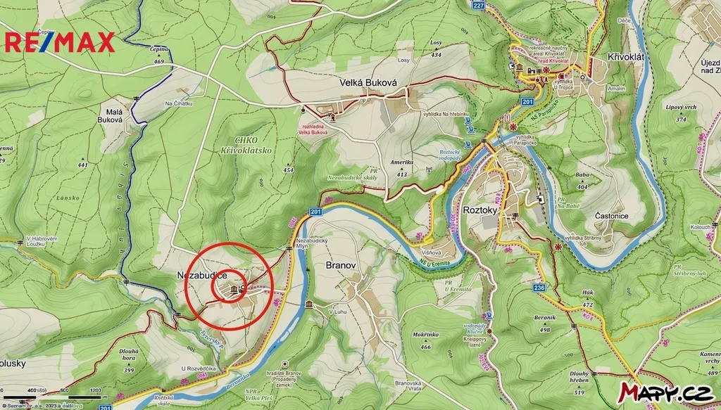 Krásná kompletně vybavená chalupa o užitné ploše cca 230m² + hospodářské budovy cca 180m² na rozlehlé zahradě 1 333m² v krásné oblasti Křivoklátsko - vybavený dům s krásnou stodolou a velkou zahradou. Tato nemovitost se nachází v malebné obci Nezabudice nad Berounkou, pouhých 6km od Křivoklátu a 17km od města Rakovník, cesta do Prahy trvá jen 50 min. Okolí je známo svojí nedotčenou přírodou, hlubokými lesy a malebným údolím řeky Berounky.