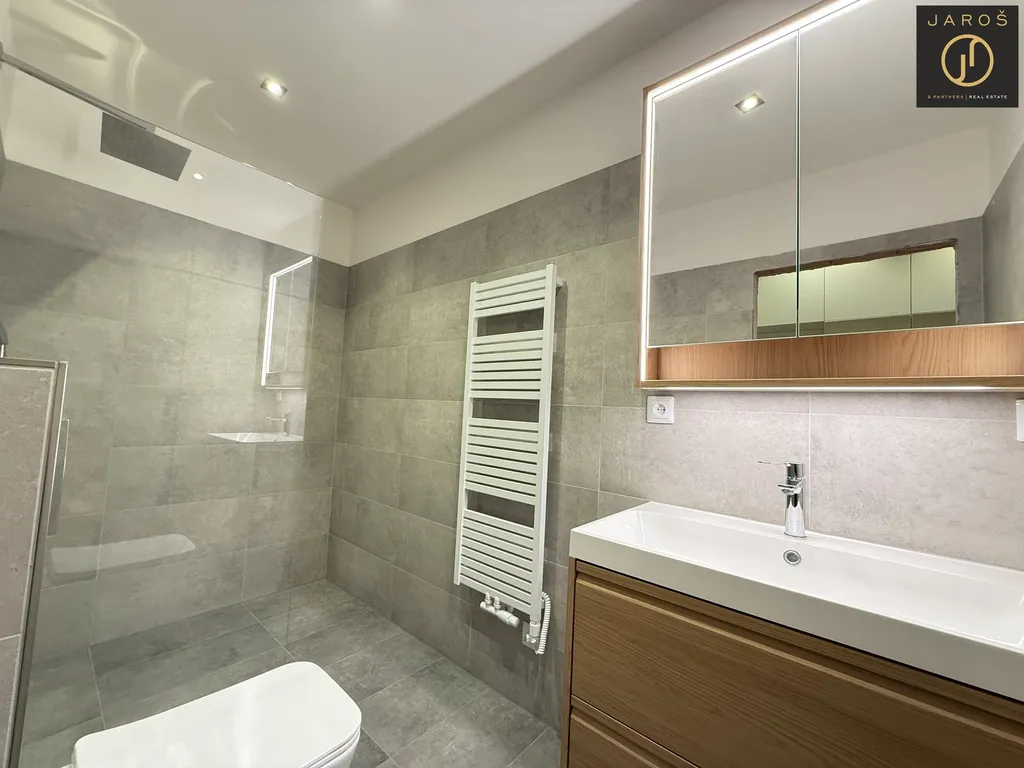 Byt je po celkové rekonstrukci z konce roku 2025 (elektroinstalace, změna dispozice, podlahy, příčky, dveře, osvětlení, elektrokotel, elektrický bojler, veškeré zařizovací prvky) Byt sestává z prostorné chodby s vestavnou skříní, světlé kuchyně s jídelnou a obývacím pokojem, ložnice, koupely s WC a technické místnosti.