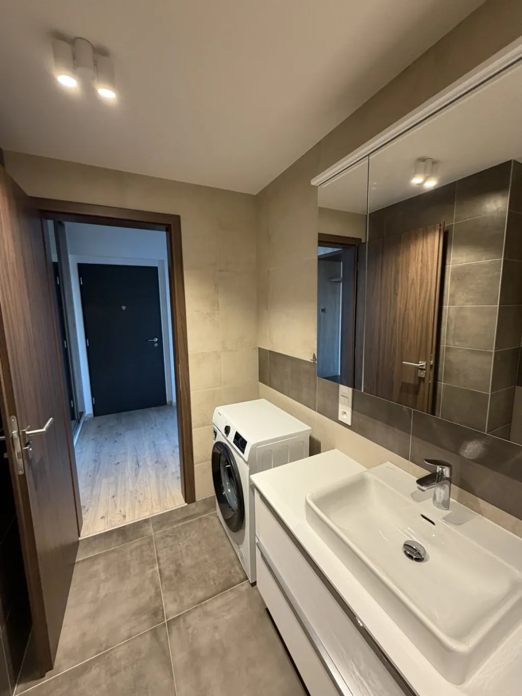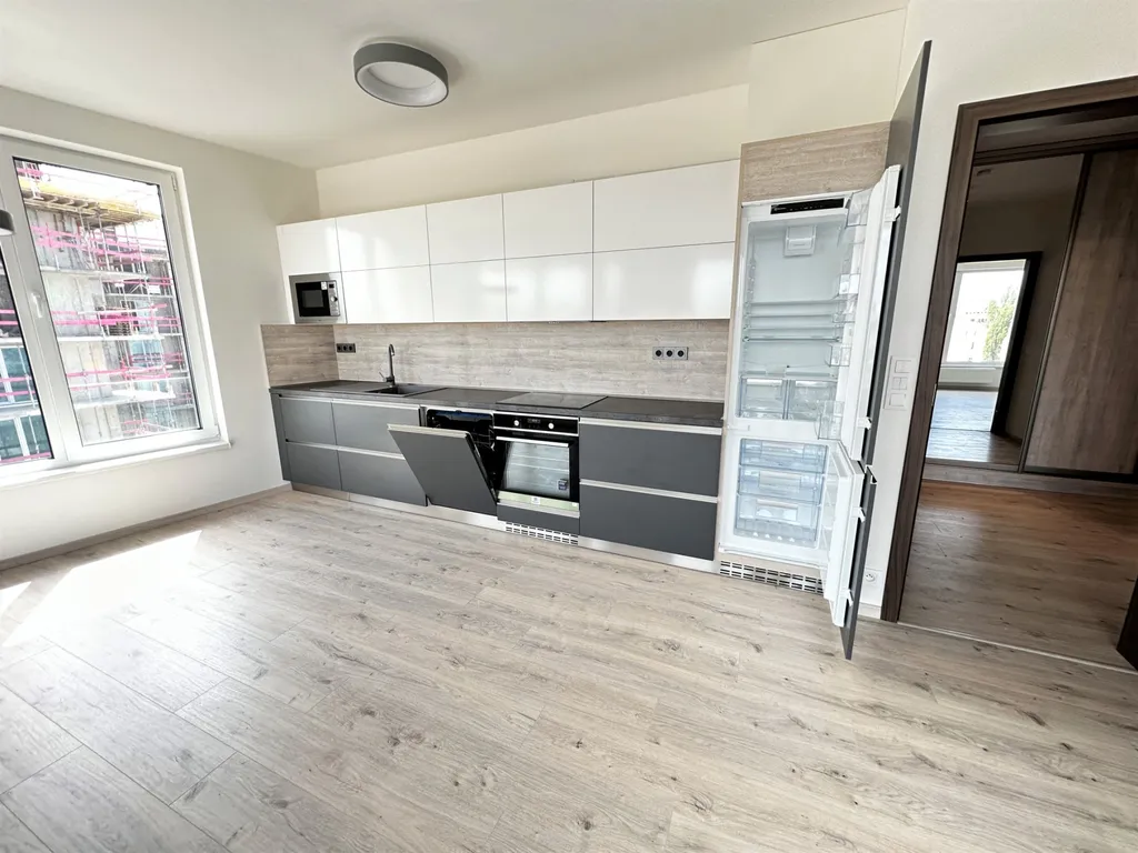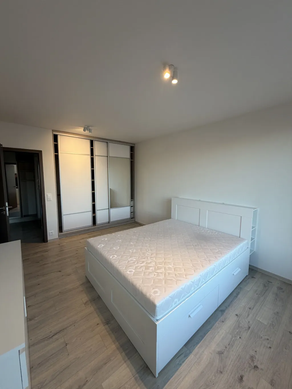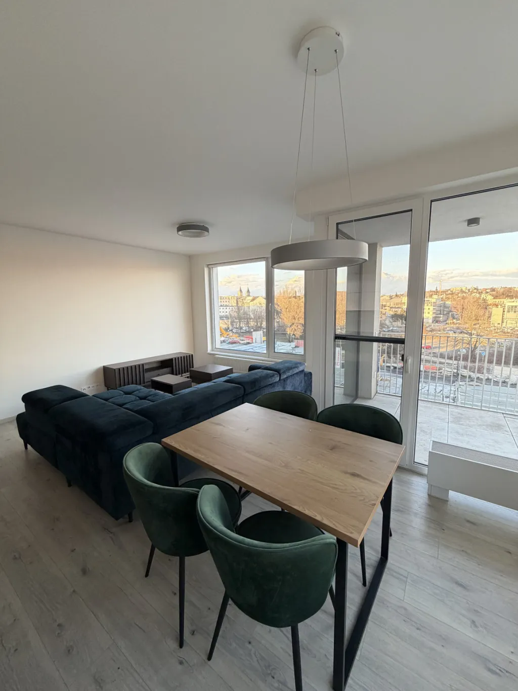 Veškeré vybavení bytu včetně interiérových dveří a plovoucích podlah je zcela nové. Velké okna zaručují dostatek přirozeného denního světla.