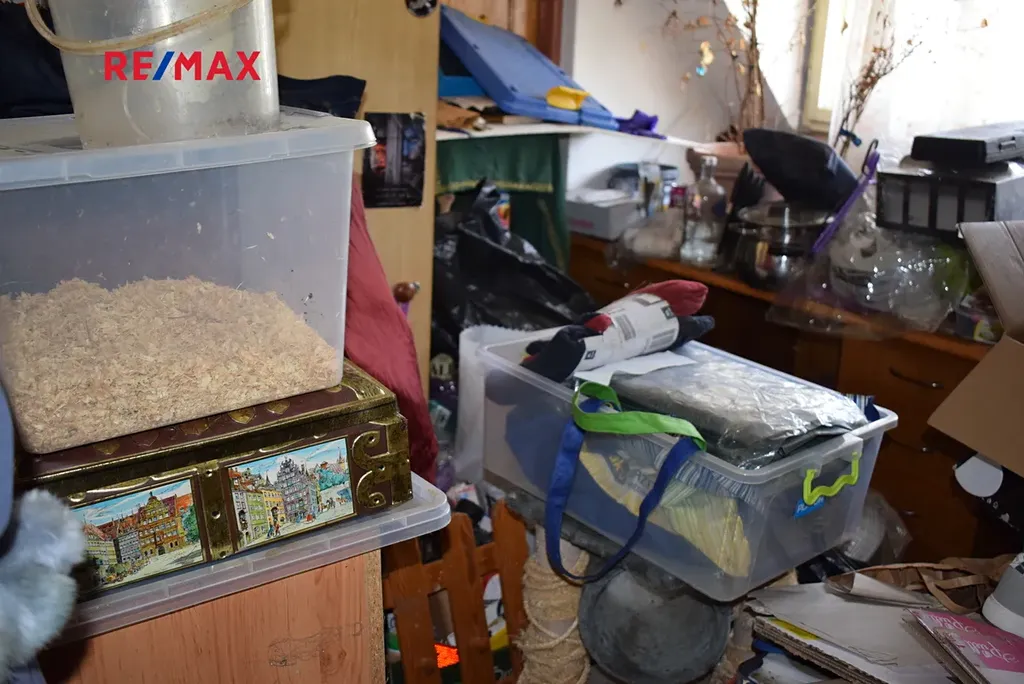 Horní místnosti , dvůr a zahrada jsou plné nahromadění věcí po původním majiteli a po vyklizení lze přistoupit k rekonstrukci ...