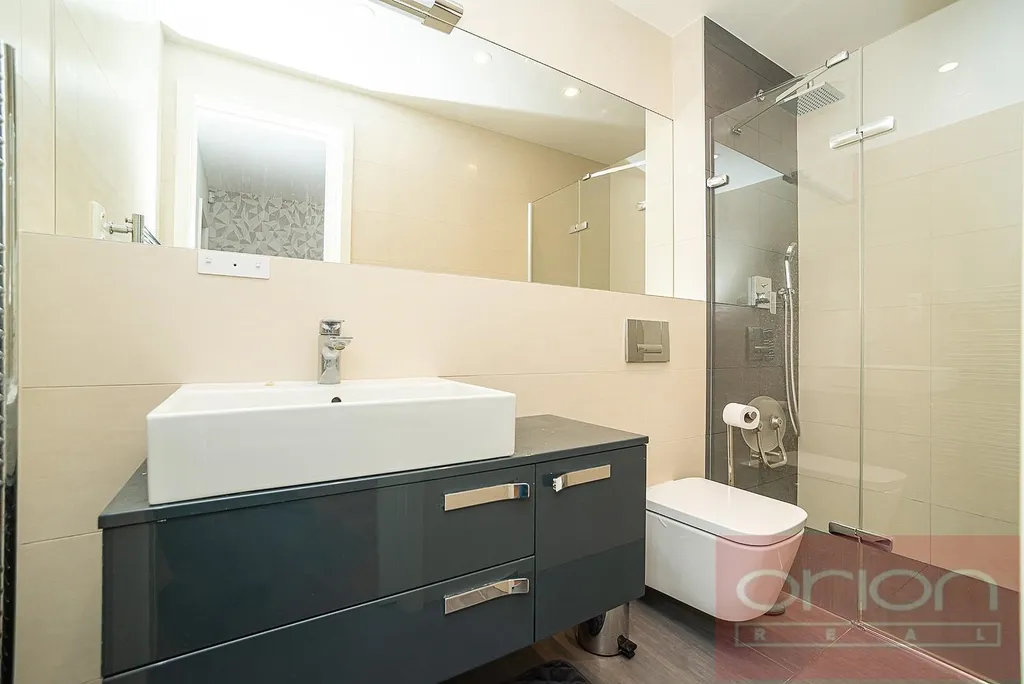 Nabízíme k pronájmu prostorný byt s dispozicí 3+kk s terasou umístěný v 1. patře moderní rezidence Villa City View v Praze 5 - Smíchov. Byt (96,5 m²) nabízí vstupní chodbu s úložným prostorem, velký obývací pokoj s jídelní částí a kuchyní a se vstupem na terasu (6m²) , odkud je nádherným výhled na město, 2 ložnice, z toho hlavní ložnice má vlastní koupelnu se sprchou a toaletou, dále druhou koupelnu s vanou a toaletou. V ložnicích jsou vestavěné skříně, obývací pokoj je vybaven designovým policovým systémem. Moderní kuchyňská linka je vybavena spotřebiči, varnou deskou Küppersbusch se systémem Vok, lednicí s mrazákem, myčkou a troubou. Na podlahách jsou kvalitní parkety a dlažba. Byt je vybaven venkovními roletami ve všech pokojích, má bezpečnostní dveře, alarm a patří k němu jedno garážové stání v podzemní garáži, jedno venkovní parkovací stání a velký sklep. Dům je situován v klidné lokalitě Prahy 5, nabízí dostatek soukromí a příjemné bydlení. Výborné spojení autem a MHD k obchodnímu centru Anděl, kde je stanice metra a tramvají, do centra města, na letiště Václava Havla, do mezinárodních škol. Volný od 1.3. 2026, prohlídky po dohodě.