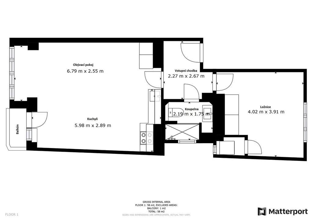 Byt prošel vkusnou a moderní rekonstrukcí a je ve velmi dobrém stavu. Dispozičně nabízí vstupní chodbu, prostorný obývací pokoj se vstupem na balkón, kuchyň a koupelnu s toaletou. Byt má zděné bytové jádro, plastová okna a podlahy jsou řešeny plovoucí podlahou v kombinaci s keramickou dlažbou, což interiéru dodává moderní a čistý vzhled.