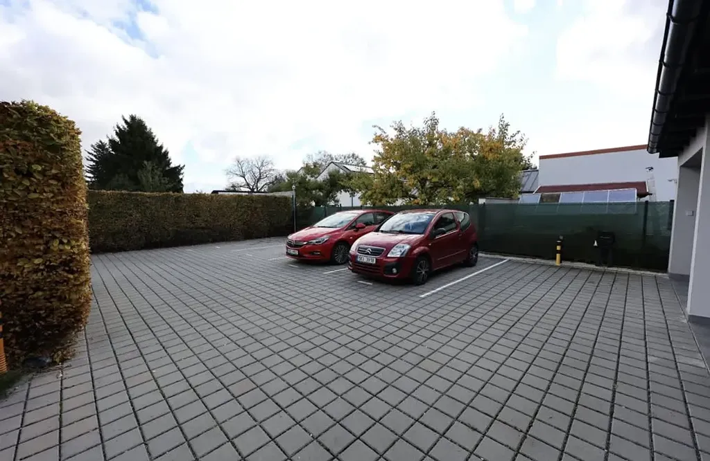 Byt o rozloze 50 m² tvoří ložnice, obývací pokoj s plně vybavenou kuchyňskou linkou, koupelna, samostatná toaleta a prostorná předsíň. Součástí vybavení je kuchyňská linka se spotřebiči, myčka, pračka, vestavěné skříně v předsíni i ložnici a zabezpečovací systém. K dispozici jsou také dvě venkovní sdílené terasy, udržovaná zeleň a uzamykatelný prostor pro kola. Parkování je zahrnuto v ceně nájmu, jedno stání se nachází uvnitř objektu a v případě potřeby je možné pronajmout další. Majitelé elektromobilů mohou využít možnost dobíjení přímo u domu.