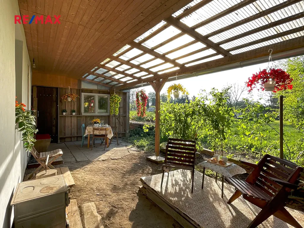 Zahradní domek, zrekonstruovaný a zateplený v roce 2018, má dvojité dveře a dvě plastová okna. V interiéru je dřevěný trámový strop, betonová podlaha s PVC-linem, na zdech je štuková omítka, palubkové obložení a keramický obklad. Vybavený je novou kuchyňskou linkou (dvojitý dřez, průtokový ohřívač vody, el. sporák s troubou a digestoří), novým koupelnovým koutem (umývadlo s průtokovým ohřívačem, skříňky a zrcadlo) a novými kamny na dřevo s odkouřením do zděného komínu.