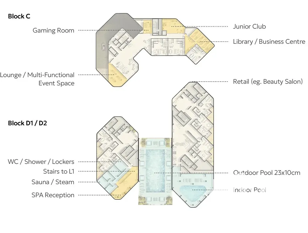 dětské zóny, knihovna, soukromé kino