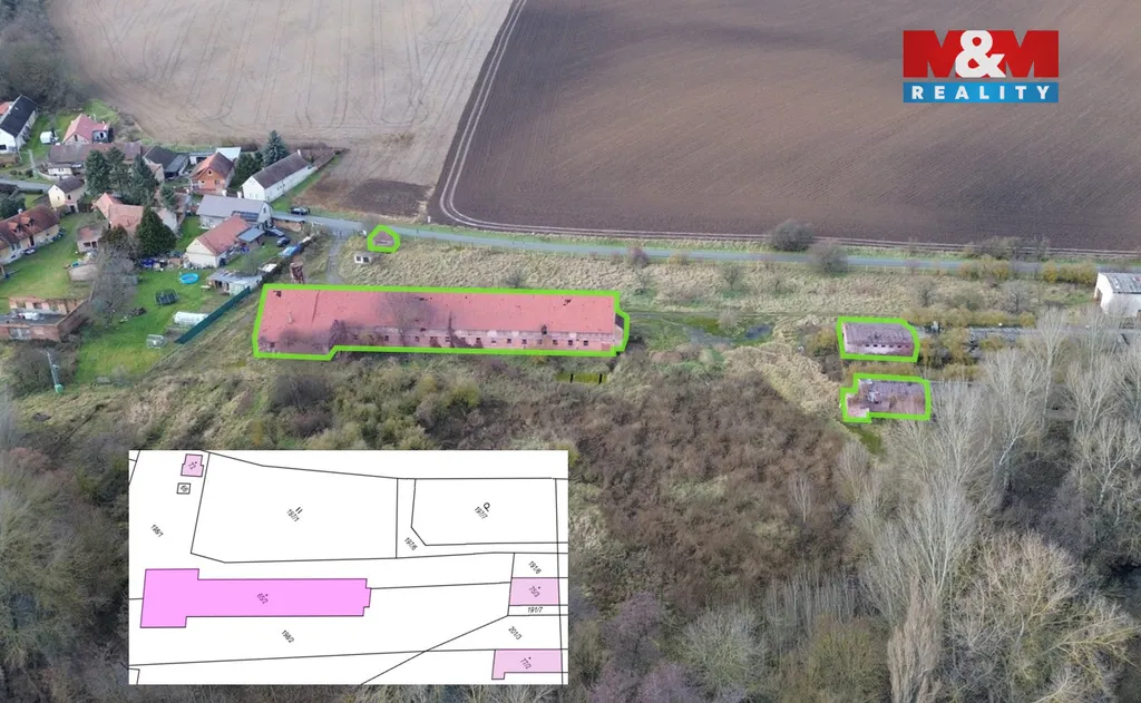 Nabízíme k prodeji investiční příležitost v krásné a klidné lokalitě na okraji obce Miškovice u Třebovle. Předmětem prodeje jsou čtyři stavby (parc. č. 72,65/2,75/3a77/2) bez čísla popisného na pozemcích , které dříve tvořily součást zemědělské usedlosti. Objekty sloužily ke skladování a zemědělské výrobě, přičemž původní kravín byl v minulosti adaptován na chov prasat. Velkou výhodou je strategická poloha s výborným napojením na silnici I/12 směr Kolín nebo Český Brod, která je vzdálená pouhé 2km. Upozorňujeme zájemce, že předmětem prodeje jsou pouze samotné stavby, zatímco pozemky pod nimi a v okolním areálu jsou v majetku jiné soukromé osoby. Tato skutečnost je již zohledněna v prodejní ceně a nabízí prostor pro budoucí jednání o užívání či odkupu. Pro více informací o tomto specifickém právním vztahu a možnostech využití objektů jsem Vám plně k dispozici a budu se na Vás těšit na prohlídce.