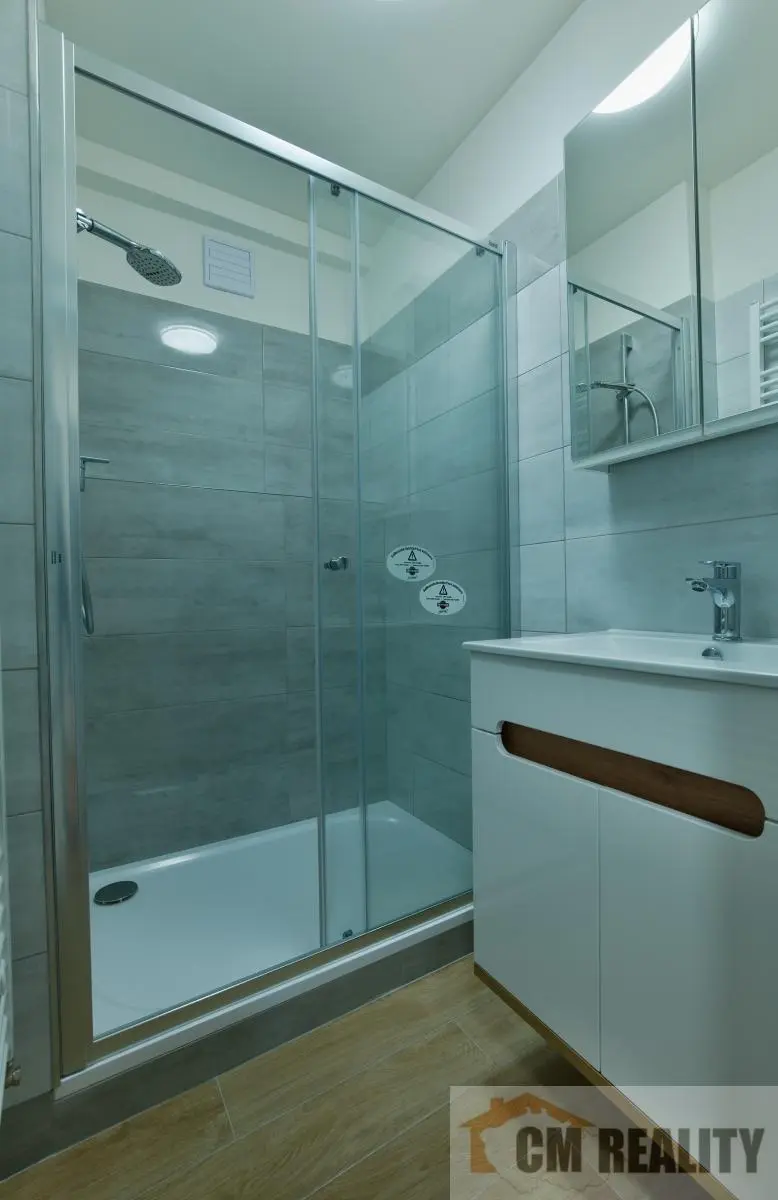 Podlahy: v chodbě a kuchyni jsou PVC podlahy, v pokojích parkety. Kuchyň je prostorná a vybavená kuchyňskou linkou, elektrickým sporákem a indukční varnou deskou. V lince je připravený prostor pro pračku s předním plněním.