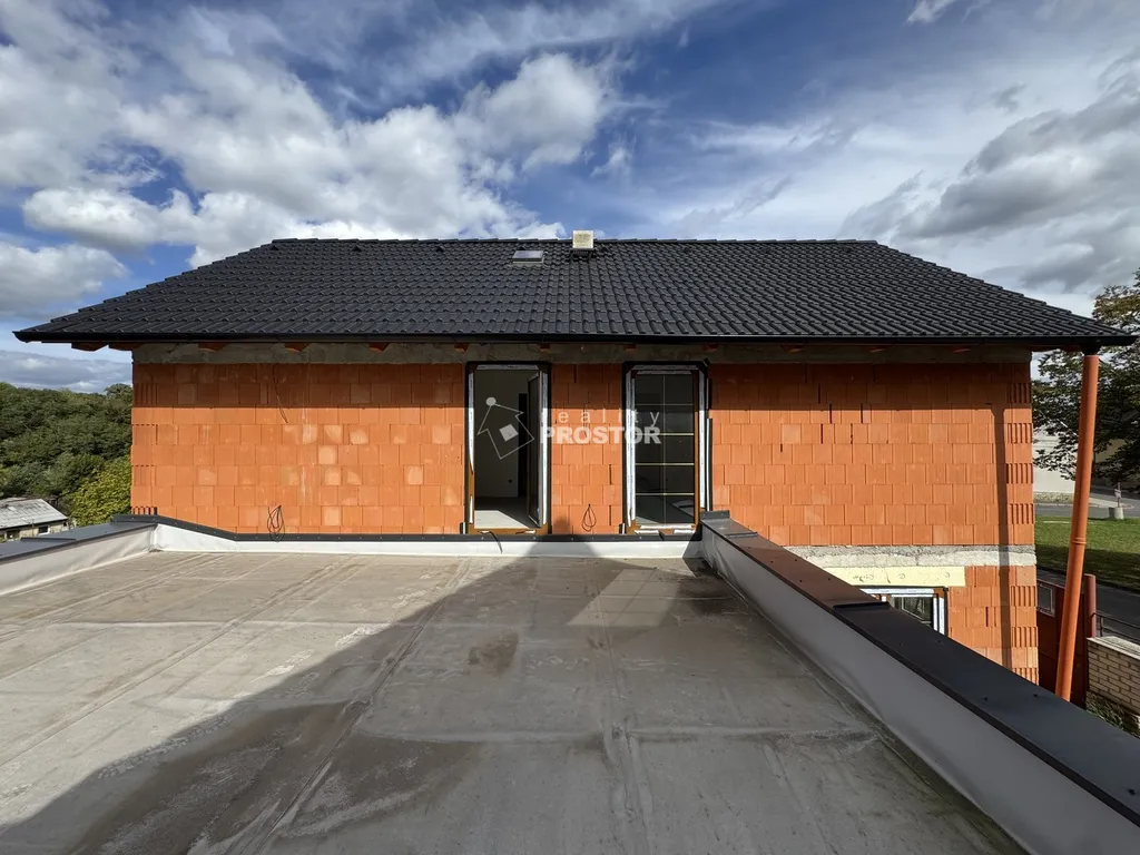 Ve 2. NP jsou tři velké ložnice z nichž je vstup na příjemně slunnou terasu s krásným výhledem do okolí (42,45m2). Dále koupelna s prostorem na sprchový kout i vanu, samostatné WC a vstup na pochozí půdu, která nabízí další úložné prostory.