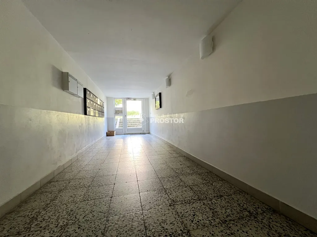 Svou dispozicí 2+kk, 42,30m2 nabízí prostorný obývací pokoj napojený na kuchyňský kout, světlou neprůchozí ložnici, vstupní vestibul který svou velikostí umožňuje umístění dalších úložních prostor a je z něj vstup na samostatné WC a do koupelny s menší vanou. V -1 PP je uzamčená sklepní kóje.