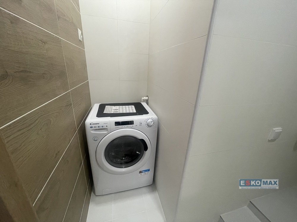 Byt je částečně vybaven: nová kuchyňská linka s vestavěnými spotřebiči (indukční deska, lednice s mrazákem, myčka, mikrovlnná trouba, pračka se sušičkou), klimatizace.