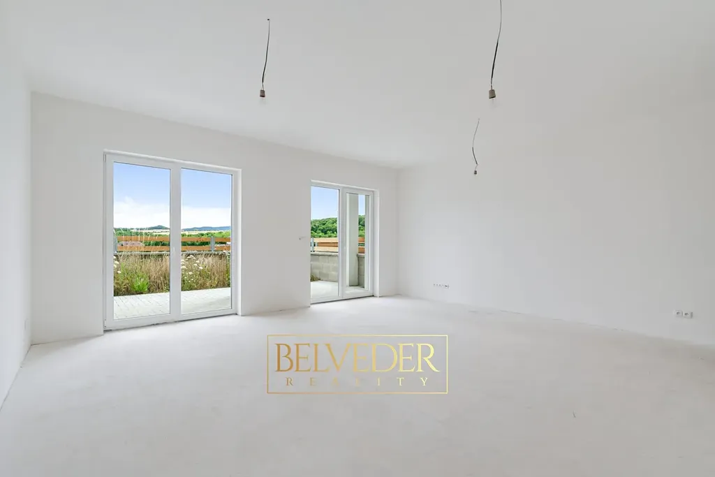 Byt se nachází v 1. nadzemním podlaží energeticky úsporné budovy a jedním z jeho největších benefitů je prostorná terasa o výměře 38 m², ideální pro odpočinek, grilování nebo setkávání s přáteli.