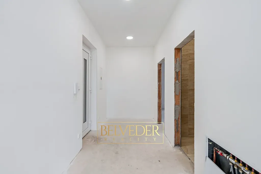 Byt je připraven k dokončení dle vlastního vkusu – podlahy, interiérové dveře a kuchyňská linka jsou ponechány k výběru nového majitele. Tento přístup vám umožní vytvořit si domov přesně podle vašich představ.