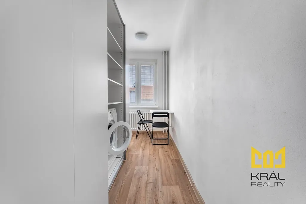 Samostatná ložnice/pokoj s ideálním tvarem pro vytvoření příjemného zázemí. Koupelna se sprchovým koutem, toaletou, umyvadlem a úložným prostorem. Vstupní chodba s prostorem pro odložení a velkou vestavnou skříní. Byt disponuje sklepní kojí.