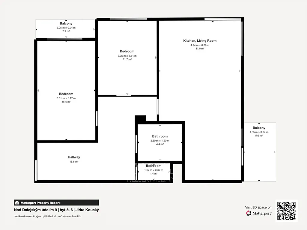 Unikátní součástí bytu je balkon o výměře cca 5 m² a lodžie 3 m², které jsou určeny výhradně k užívání tohoto bytu a nabízí krásný výhled a přímý kontakt s přírodou.