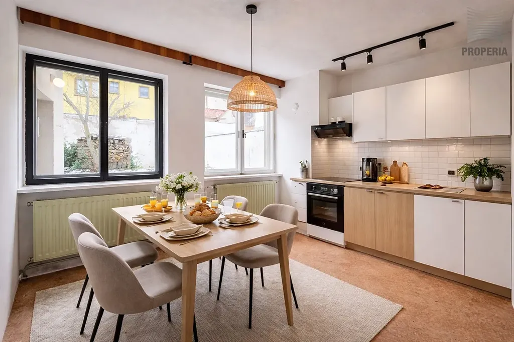 Z ložnice je přímý vstup na terasu s odpoledním sluncem, ideální pro relaxaci po náročném dni. Dvůr nabízí dostatek soukromí, prostor pro setkávání s přáteli i pro menší zahradní projekt, kde můžete realizovat své zahradnické sny. Půdní prostor představuje další potenciál, neboť nabízí možnost vytvoření další obytné místnosti, která může sloužit jako pracovna nebo pokoj pro hosty.