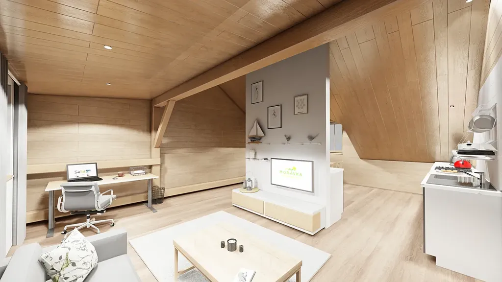 Apartmán je součástí nového projektu 11 horských apartmánových bytů Morávka Apartmány.
