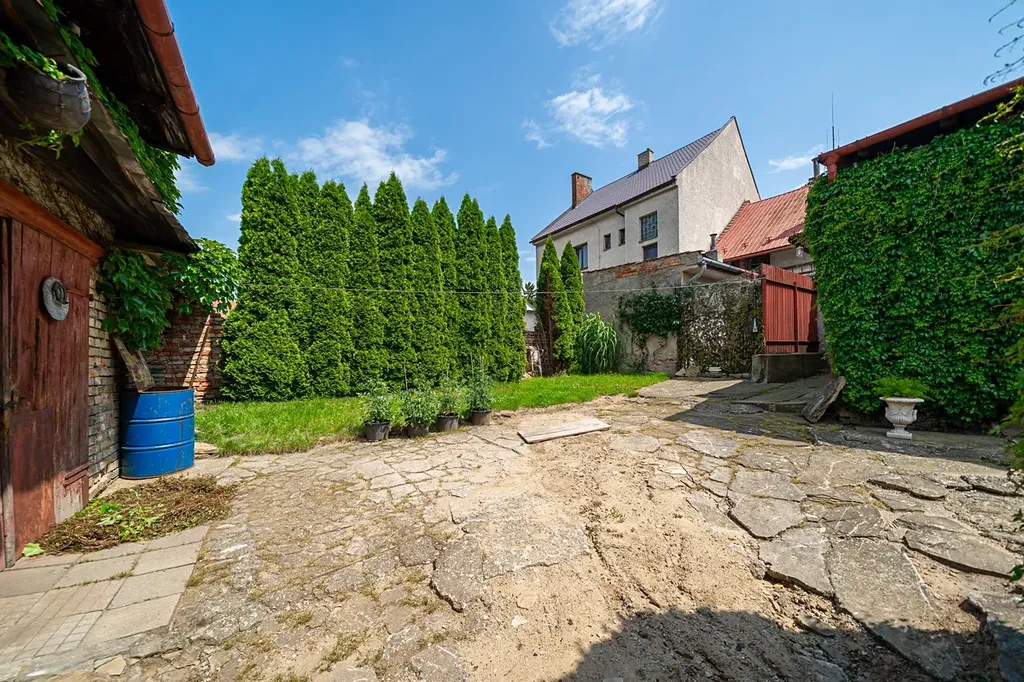 Přístup do domu vchodem z hlavní ulice a vraty za zadní části na dvorek