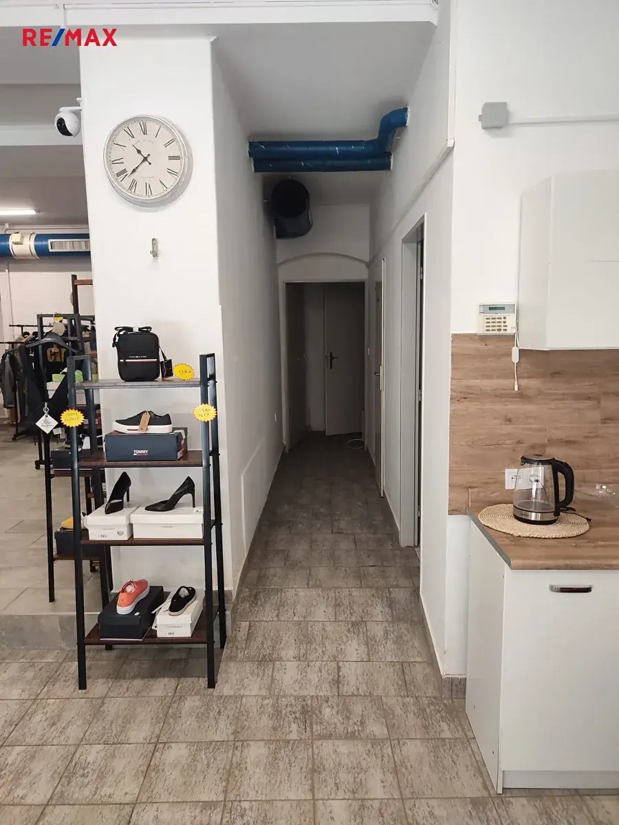Nabízíme k pronájmu obchodní prostory na ulici 28 října v Jeseníku. Tento obchodní prostor s prosklenými výlohami do ulice je aktuálně užíván jako prodejna oděvů a obuvi. Celková výměra prostor je 106,3 m2, čistá prodejní plocha 76 m2 a 30,3 m2 příslušenství ( kancelář /sklad, sociální zařízení).