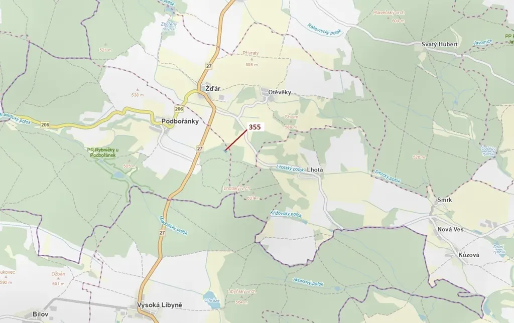 Lesní pozemek o výměře 1 924 m2, parcelní číslo 355, podíl 1/1, katastrální území Podbořánky, obec Jesenice, obec s rozšířenou působností Rakovník, okres Rakovník, Středočeský kraj.