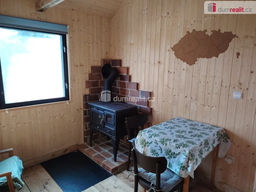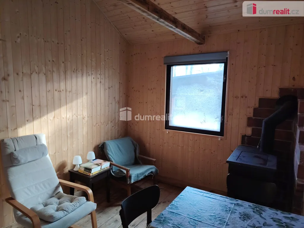 Dumrealit.cz Vám zprostředkuje ve výhradním zastoupení jedinečnou koupi stavby pro rodinnou rekreaci s číslem evidenčním, která je součástí lesního pozemku, nacházejícího se ve vyhledávané oblasti Máchova jezera, v Doksech u České Lípy. Byla využívána ke krátkodobým pronájmům (od dubna do října), nebo k rekreaci majitelů. Tento dvoupodlažní dřevěný objekt má celkovou výměru 35m². Cca před čtyřmi lety prošla chata značnou rekonstrukcí ( zateplení skelnou vatou + parotěsná folie + dřevěné obložení, dřevěné podlahy, sprchový kout, WC - kompostovací - ekologické, nová krbová kamna + komín), ohřev vody pomocí bojleru. Dispozice: I.NP - kuchyň, obývací pokoj, ložnice, II.NP - malá půda. Do chaty je zavedena el.energie, taktéž je chata napojena na vodovodní řád. K objektu náleží spoluvlastnický podíl na oploceném pozemku s celkovou výměrou 3 062m², o velikosti 1/5. Vzhledem k umístění chaty, cca 150 m od břehu Máchova jezera a dobrému stavu, v oploceném areálu, kde se nachází další 4 chaty, je objekt vhodný pro rodiny s dětmi. Mohu její koupi vřele doporučit. Více info. v RK. Ev. číslo: 633926.