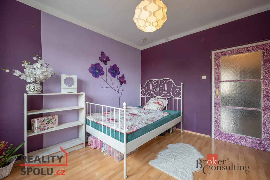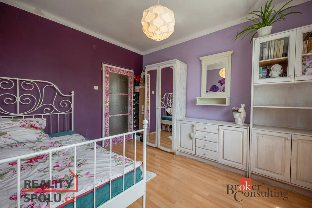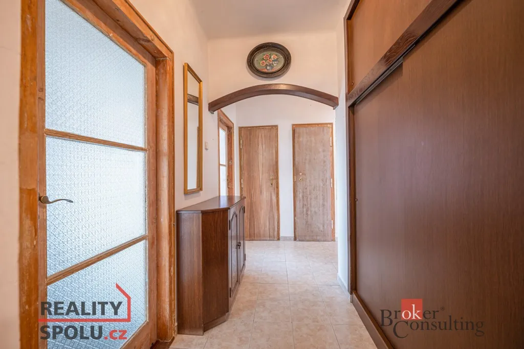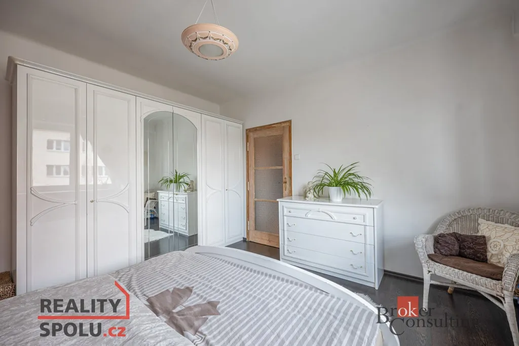 Po vstupu do bytu bezpečnostními dveřmi se dostanete do chodby, kde najdete botník, věšák na míru a vestavěnou skříň. Z chodby se můžete dostat do obývacího pokoje, dětského pokoje, ložnice, samostatné toalety, koupelny a komory, kde je místo pro pračku a úložný prostor. Prostorný obývací pokoj je šikovně propojený s kuchyňským koutem s masivní dřevěnou linkou, jídelním stolem a vstupem na balkón. V ložnici a dětském pokoji najdete plovoucí podlahu a v obývacím pokoji pak dubové parkety.