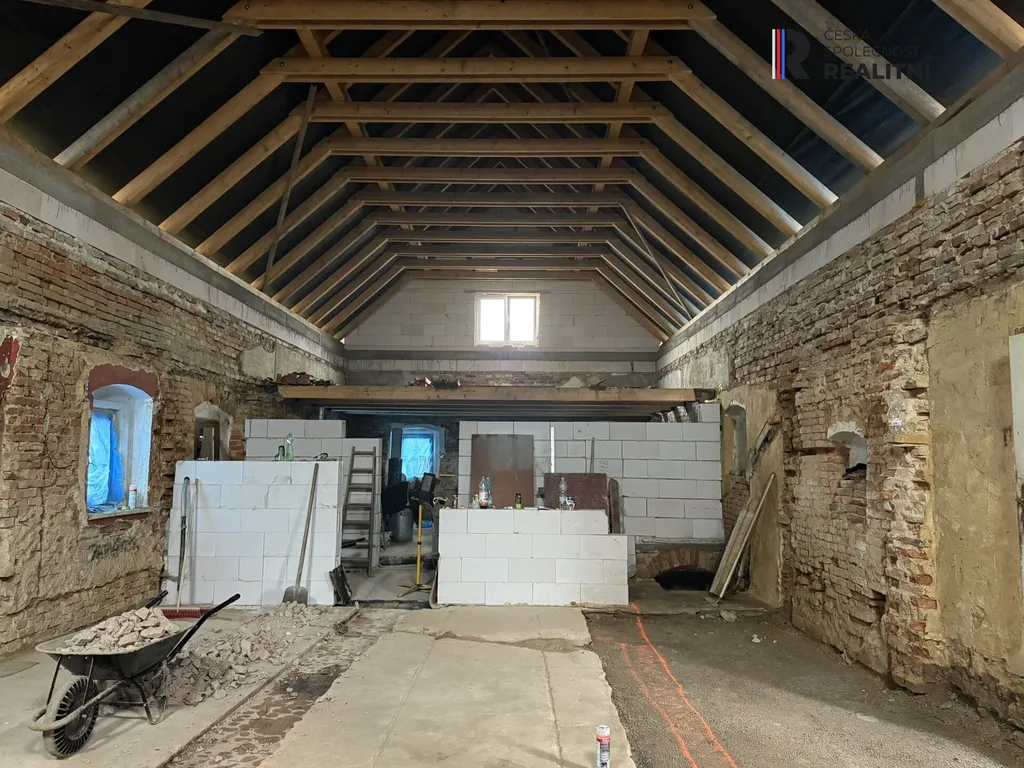 Stavba je zděná, s masivními obvodovými zdmi. Interiér je kompletně vyklizený a připravený k další rekonstrukci dle vlastních představ. V domě jsou patrné již započaté stavební úpravy – nové zdivo, otevřený krov, vysoké stropy a možnost vytvoření velkorysého obytného prostoru, případně obytného podkroví.