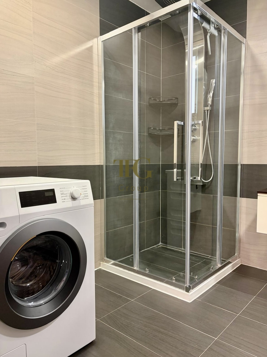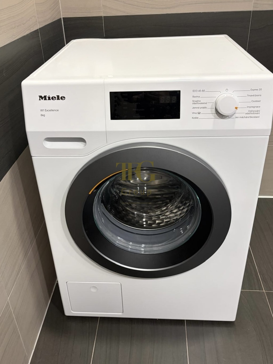 Pokud patříte mezi milovníky horkých koupelí, tak vás jistě potěší, že v bytě je jak sprchový kout, tak i vana. Součástí pronájmu je i pračka Miele, kterou jistě ocení nároční uživatelé.