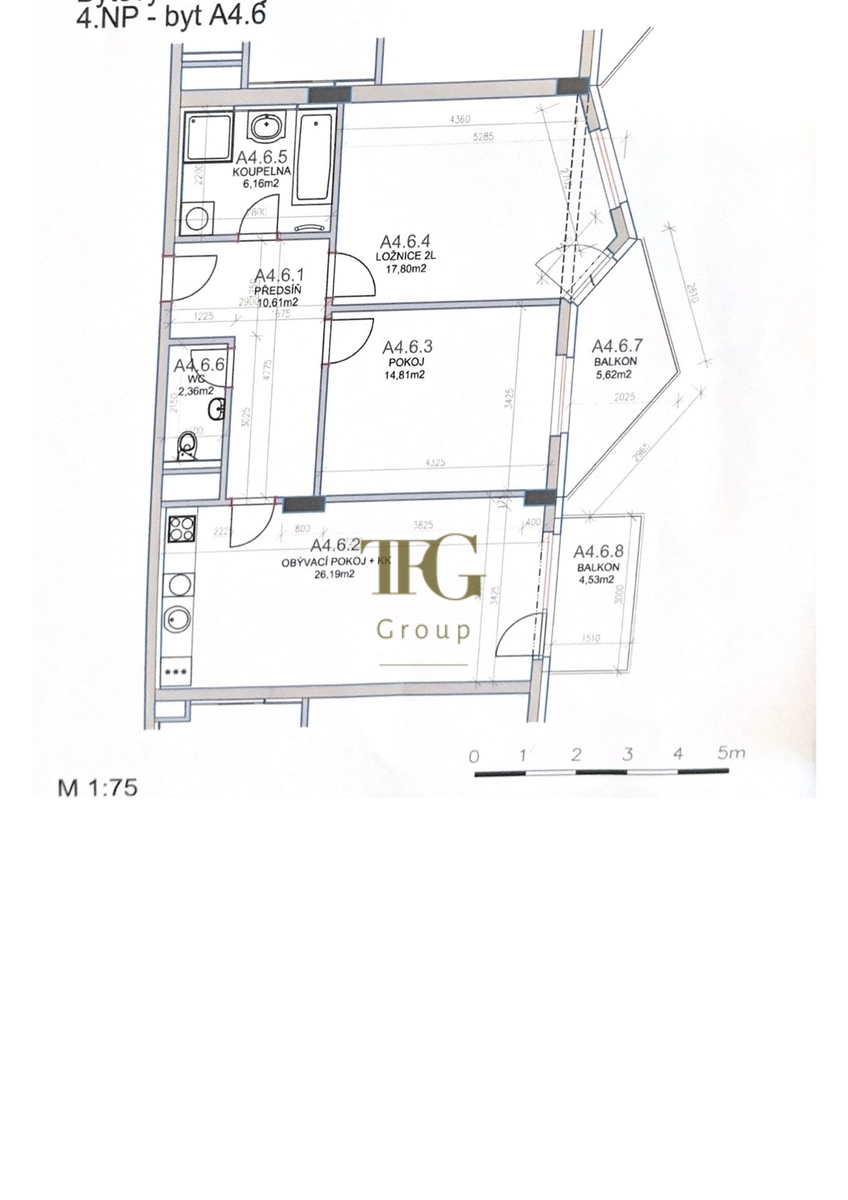 Součástí bytu jsou dva balkony, které mají plochu 5,6 a 4,5m², a které poskytnou prostor k relaxaci po náročném dni. Prostorná chodba disponuje velkou vestavěnou skříní, která je nepostradatelnou součástí pro přehledné a organizované bydlení.