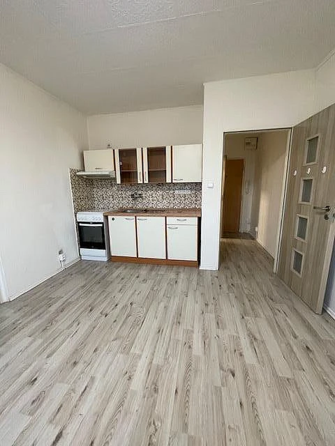 Dispozice zahrnuje obývací část s kuchyňským koutem, samostatnou ložnici a koupelnu se sprchovým koutem. Byt je světlý, udržovaný a připraven k okamžitému nastěhování.