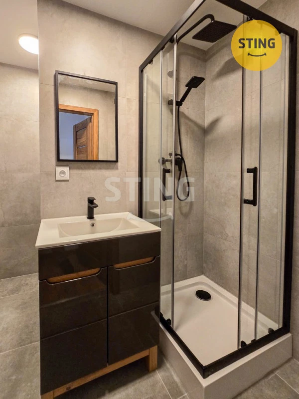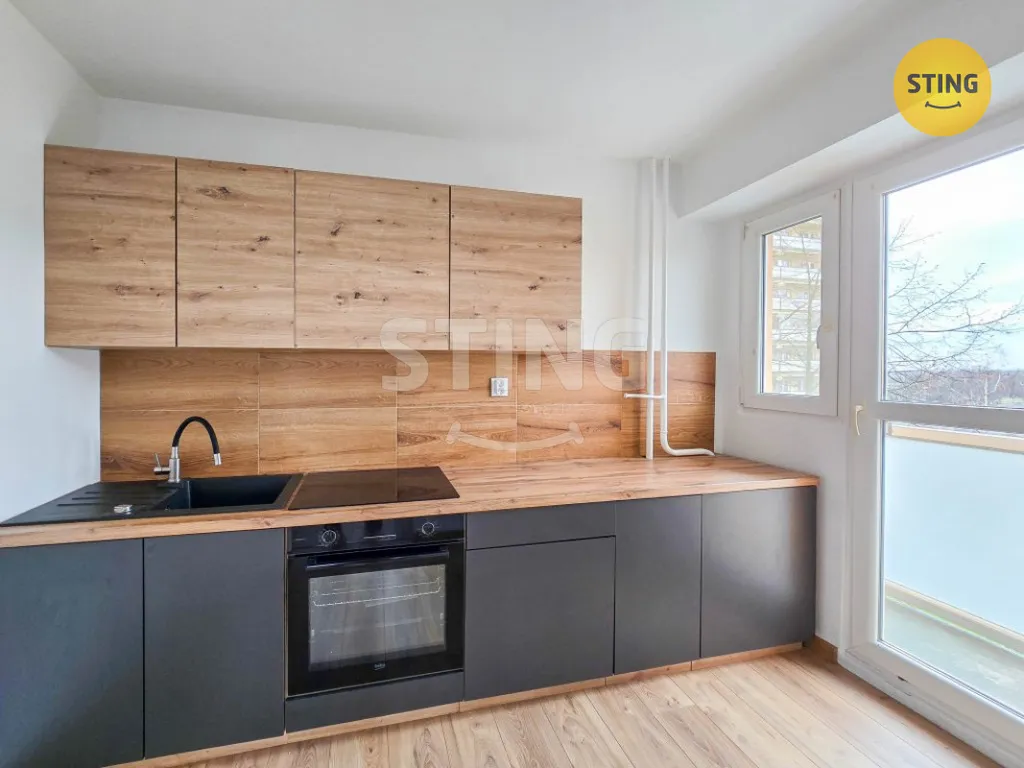 Kuchyň má moderní linku s indukční varnou deskou a elektrickou troubou. Koupelna je zděná, v obkladech a s dlažbou, sprchovací kout, příprava na pračku a v zadní části koupelny se nachází závěsné WC. V pokojích, v chodbě i v kuchyni je položená kvalitní podlaha ve stejném dekoru. Ložnice je neprůchozí. Z kuchyně je vstup na malý balkónek a na velkorysou lodžii je vstup z obývacího pokoje.