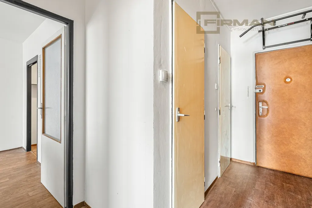 Dispozice bytu je praktická a zároveň otevřená možnostem. Je zde samostatná ložnice a obývací pokoj s francouzským oknem, díky kterému je celý prostor krásně prosvětlený, působí vzdušně a otevírá se příjemnému výhledu do okolní zeleně, což dodává bytu klidnou a harmonickou atmosféru. Byt je určen k rekonstrukci, ale zároveň je ihned obyvatelný – můžete se nastěhovat a postupně si ho dotvořit přesně podle svých představ. K bytu náleží sklepní kóje / komora o velikosti přibližně 3 m², která se nachází v 9. patře.