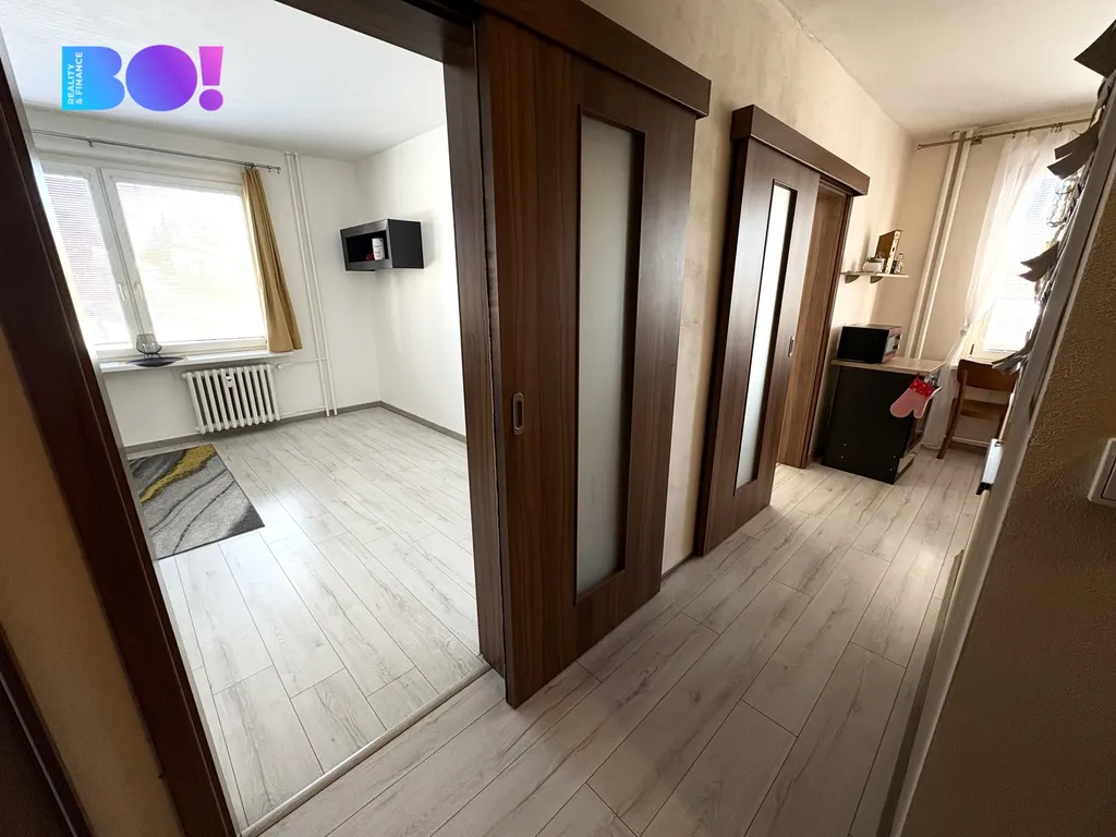 Dispozice bytu je velmi praktická. Po vstupu Vás přivítá chodba se šatní skříní, ze které je přístup do kuchyně, obývacího pokoje a jednoho z pokojů. Z obývacího pokoje se dále vstupuje do dalšího samostatného pokoje s lodžií. Koupelna je vybavena sprchovým koutem, toaleta je oddělená.