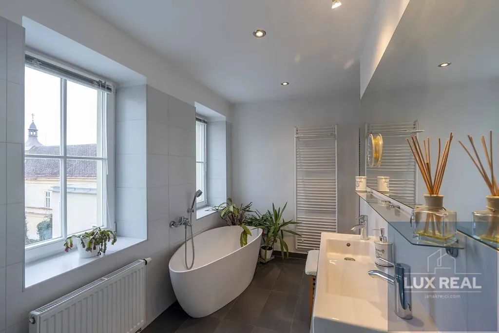 Loft se nachází jako jediný v třetím patře budovy, čímž nabízí krásný výhled na město. Jeho výraznou součástí je také střešní terasa o rozměrech 36m2, která je ideálním místem pro odpočinek, posezení s přáteli nebo třeba večerní grilování. Umožňuje krásné výhledy na zámek i Svatý kopeček.