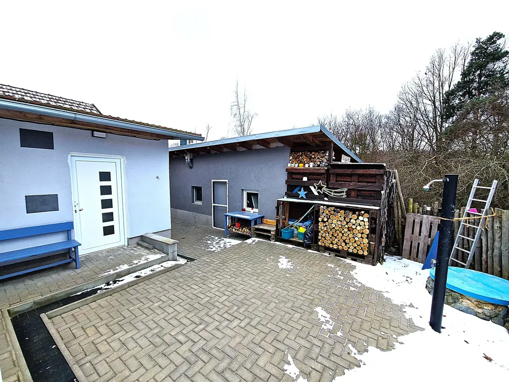 Prostor pro parkování je dostatečně zajištěn s možností až čtyřech parkovacích míst, což je ideální pro rodinu s více vozy. Dům disponuje také praktickým sklepem o velikosti 16 m², který poskytuje dodatečný úložný prostor. Výborná dostupnost je zajištěna díky blízkosti vlakového nádraží, autobusové zastávky a přístupu po silnici.