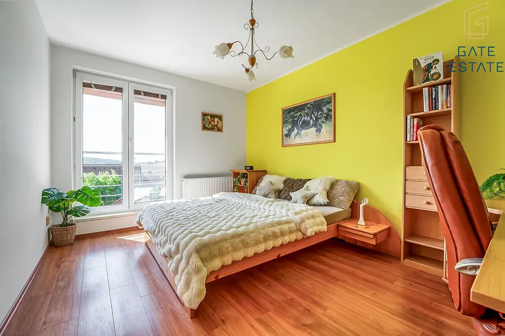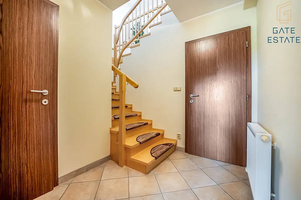 V patře se nachází čtyři neprůchozí pokoje, druhá koupelna s vanou i sprchovým koutem a samostatná toaleta, což poskytuje dostatek pohodlí i soukromí pro větší rodinu. Dům nabízí nadstandardní množství úložných prostor – hned u vstupu je praktická šatna, v horním podlaží pak šatní prostor s vestavěnou skříní a samostatná menší místnost, kterou lze využít jako šatnu nebo úložný prostor dle vlastních potřeb.