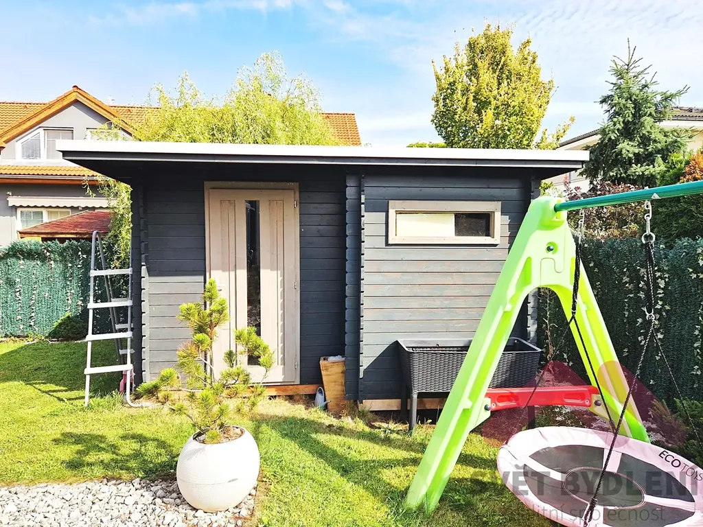 Zimní zahrada s posuvným otevíráním - skvělé místo pro odpočinek, rodinné oslavy nebo posezení s přáteli po celý rok. Velký zahradní domek pro uskladnění nářadí či sportovního vybavení. Zděný nadzemní bazén pro letní osvěžení. Možnost ponechání herních prvků pro děti (houpačky, skluzavky apod.). Parkování pro dvě auta - jedno stání na pozemku a jedno přímo před domem.