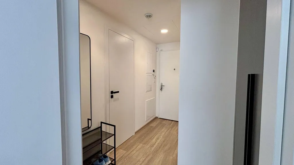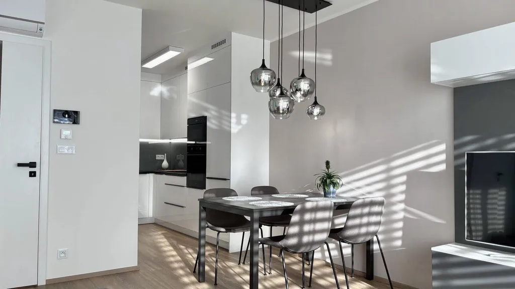 Byt je kompletně vybaven nábytkem a spotřebiči, včetně myčky nádobí. Nachází se v novém a moderním bytovém komplexu.