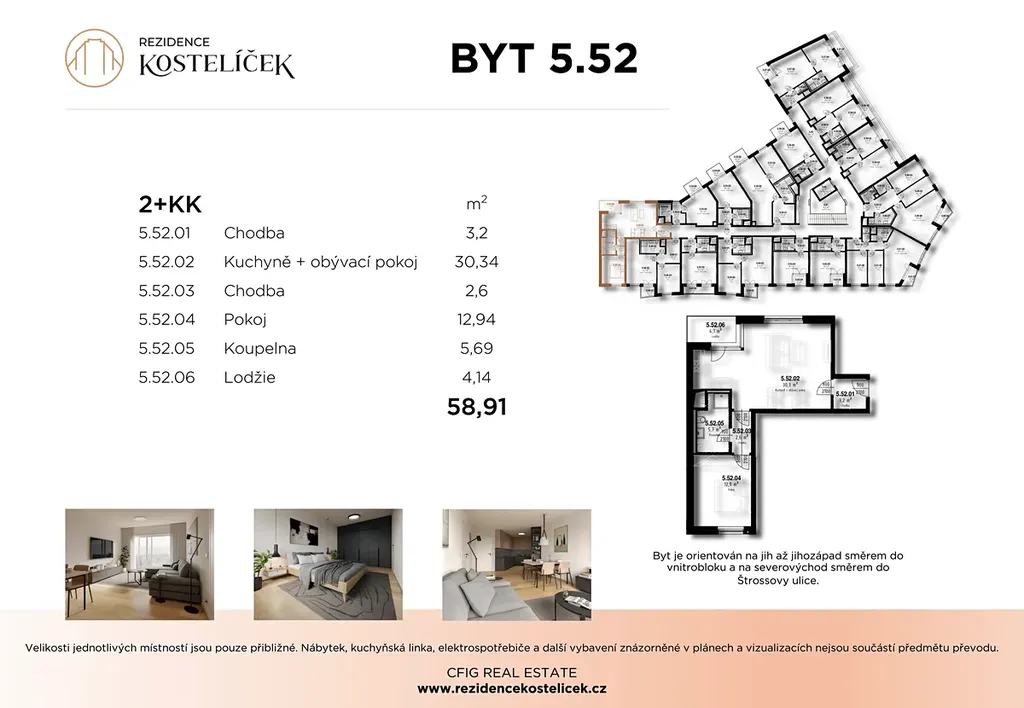 Nabízíme k prodeji byt 2+kk o celkové výměře 58,91 m² z toho lodžie o celkové výměře 4,14 m²