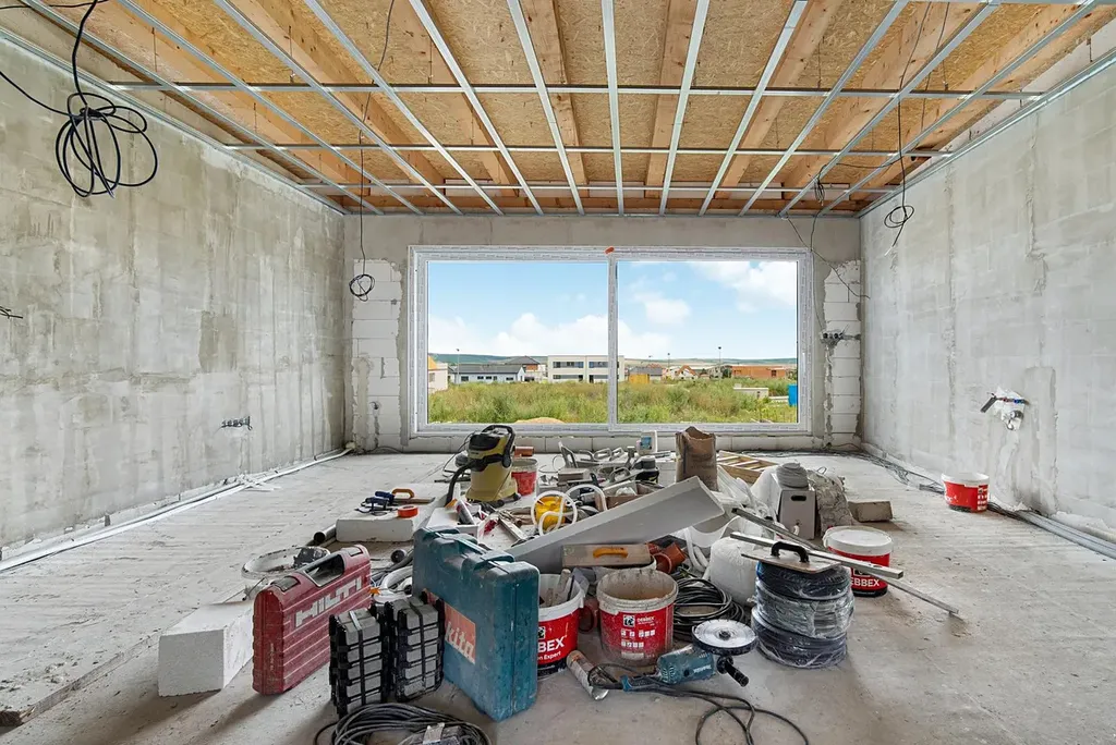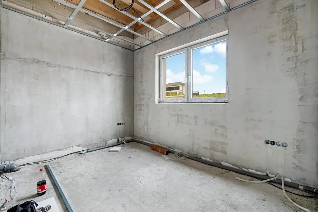 Dům má dokončený kontaktní zateplovací systém a fasádu. V současné době probíhá výstavba příček a vnitřních rozvodů. Ideální příležitost k tomu zvolit si dekor a interiér dle vlastních představ a přání.