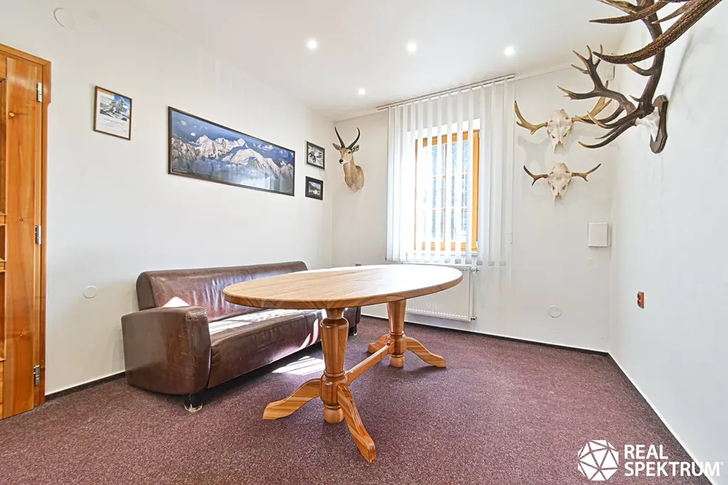 V prvním nadzemním podlaží byl dříve byt a nyní je prostor přebudovaný na exkluzivní kanceláře.