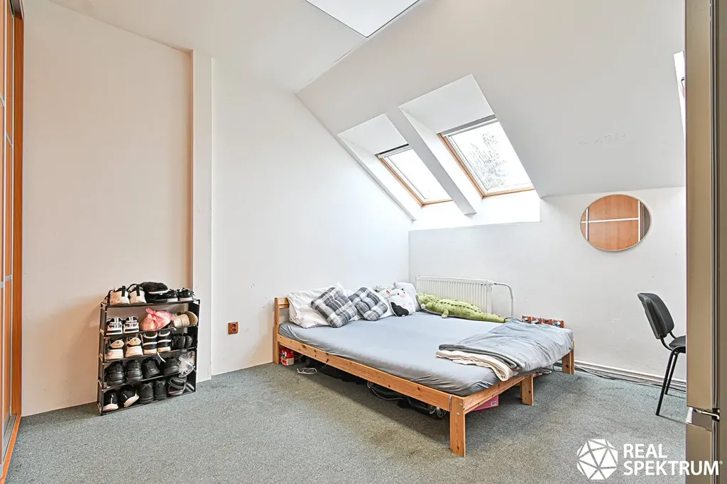 Podkroví dříve bylo využito jako kanceláře a dnes jako byt o dispozici 5+1 a výměře cca 140 m2. Ohřev teplé užitkové vody zajišťuje elektrický bojler. Každá místnost v podkroví má vlastní klimatizaci.