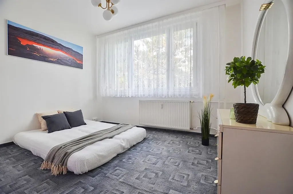 Jedná se o velice hezký byt v klidné lokalitě s dobrou dopravní dostupností MHD (zastávka autobusu 3min. chůze od domu). V okolí se nachází veškerá občanská vybavenost a dostupnost volnočasových aktivit (Kunratický les).